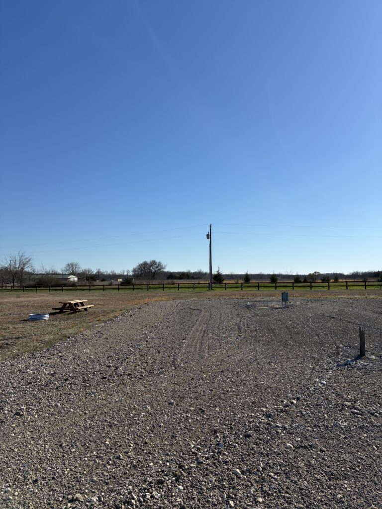 A quiet country RV park near Roxton, Texas with spacious sites and a peaceful setting.